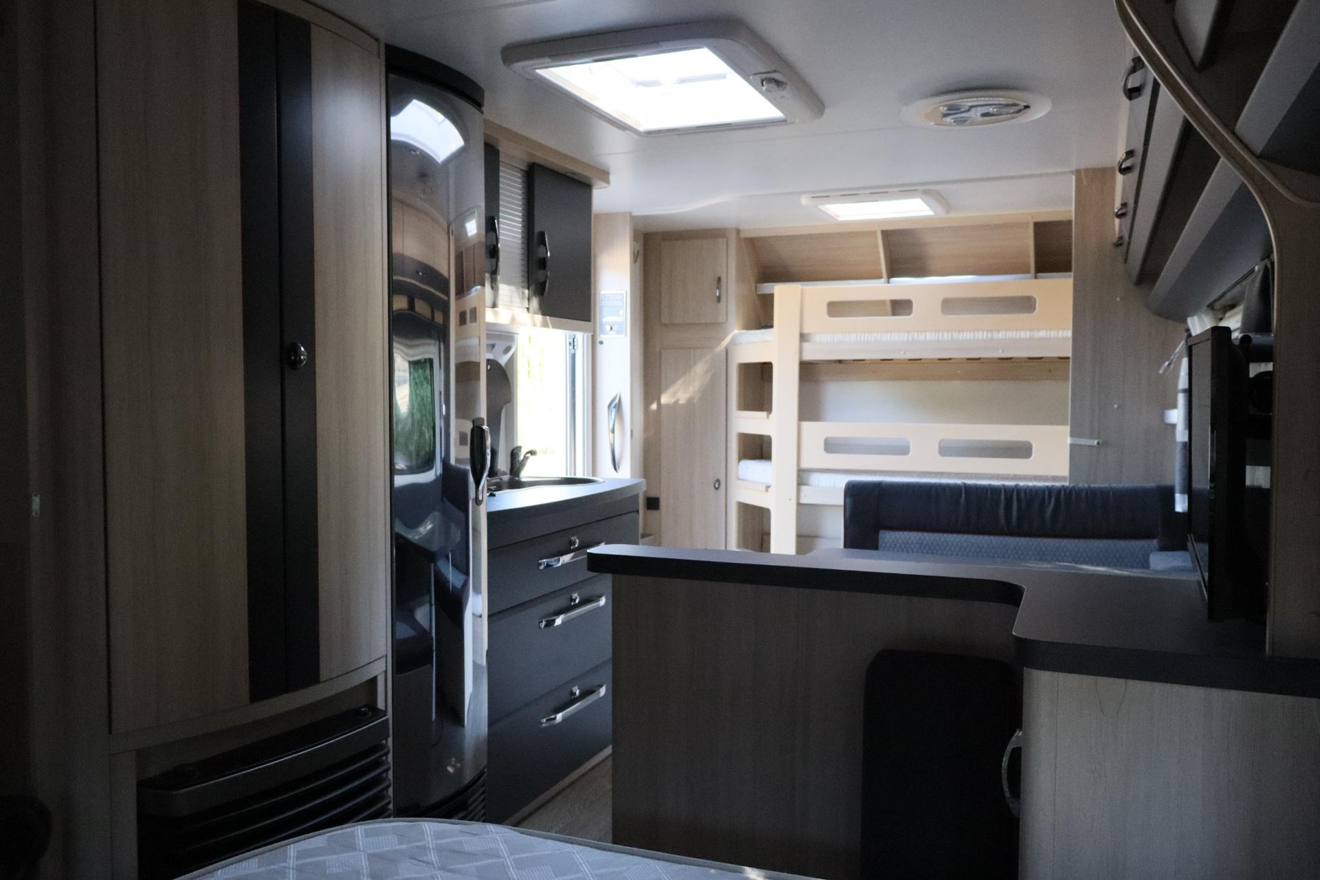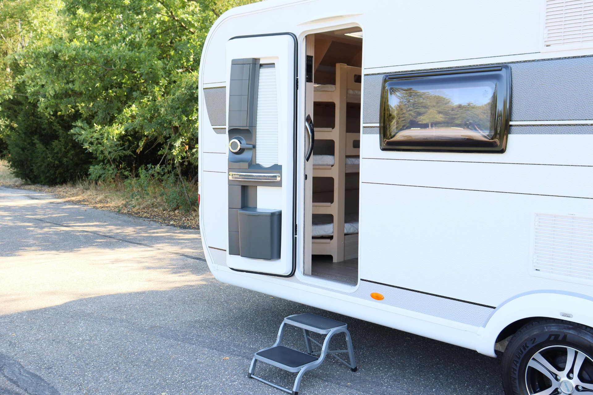 - 2021 | 5 slaapplaatsen | Fietsendrager | Airco | Vol Automatische Mover | Toilet | Keuken | Koelkast | Verwarming | Voortentlamp | Smart Home bediening | Stapelbedden | 7,5 m lang