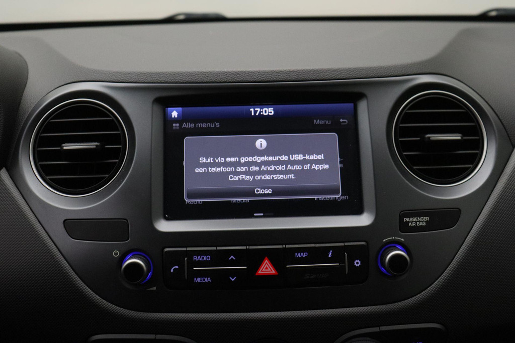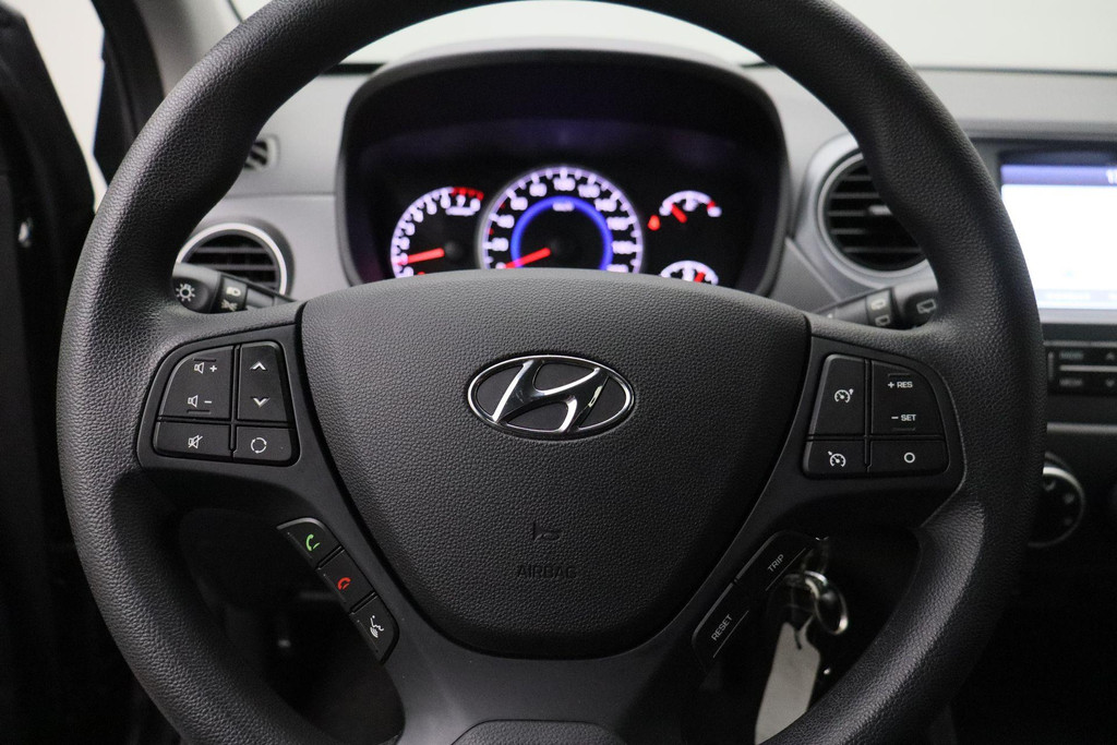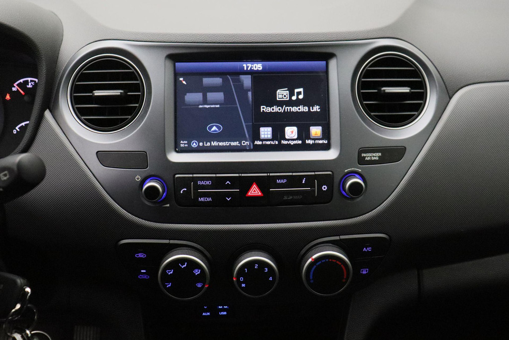 Prettig, altijd weten waar je moet zijn en hoe lang de rit nog duurt met het full map navigatiesysteem. Switchen van radiozender of het geluid dempen - het gaat gemakkelijk en veilig dankzij de audiobediening op het stuur. Met de DAB-ontvanger luistert u naar glasheldere digitale radio. Boem is ho? Niet bij deze Hyundai i10. De piepjes van de parkeersensoren waarschuwen u op tijd voor obstakels. Voor de lange ritten is de cruise control een verademing. Natuurlijk behoren airconditioning, centrale deurvergrendeling met afstandsbediening, boordcomputer en verstelbaar stuur ook tot de uitrusting van deze complete auto.